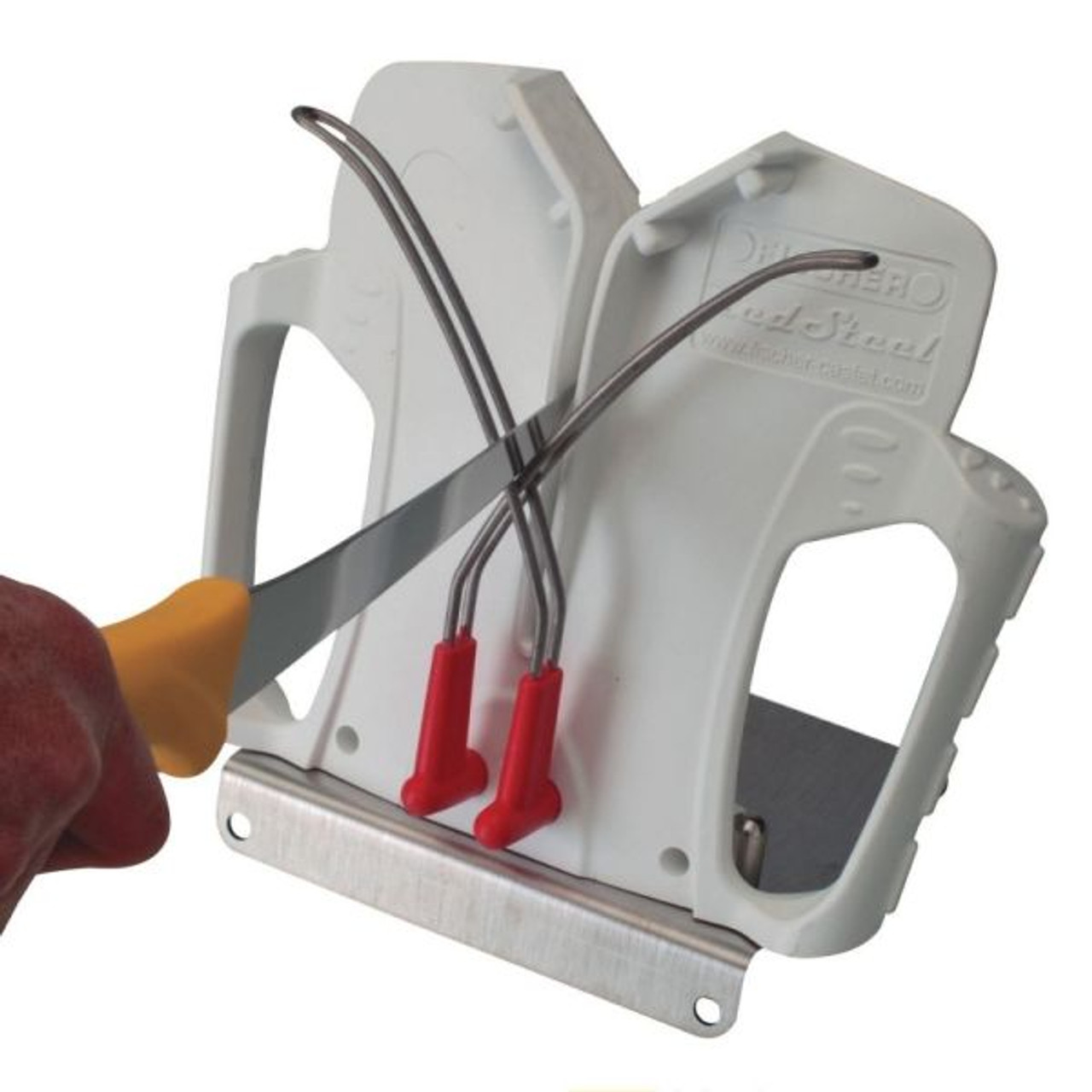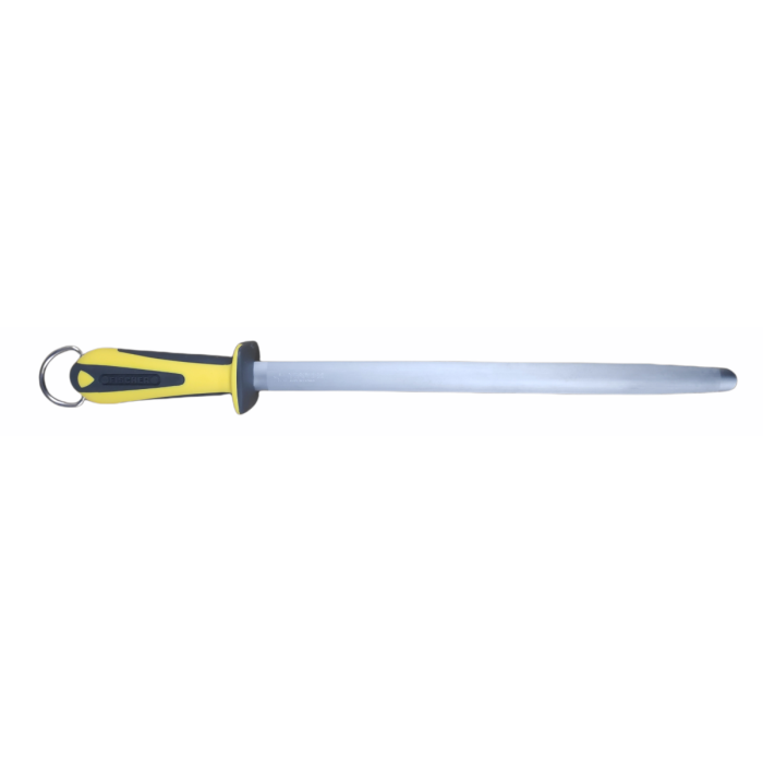 TheFischer Sharpening Steel, Regular Cut, Yellow/30cm(12”) N1260 is part of the Eco Chef series, constructed with a classic food-safe polypropylene handle and an integrated safety guard. This is a round steel of standard grade, enabling the sharpening of knives (as opposed to honing). Standard cut steels should only be used on occasion for blunt knives.