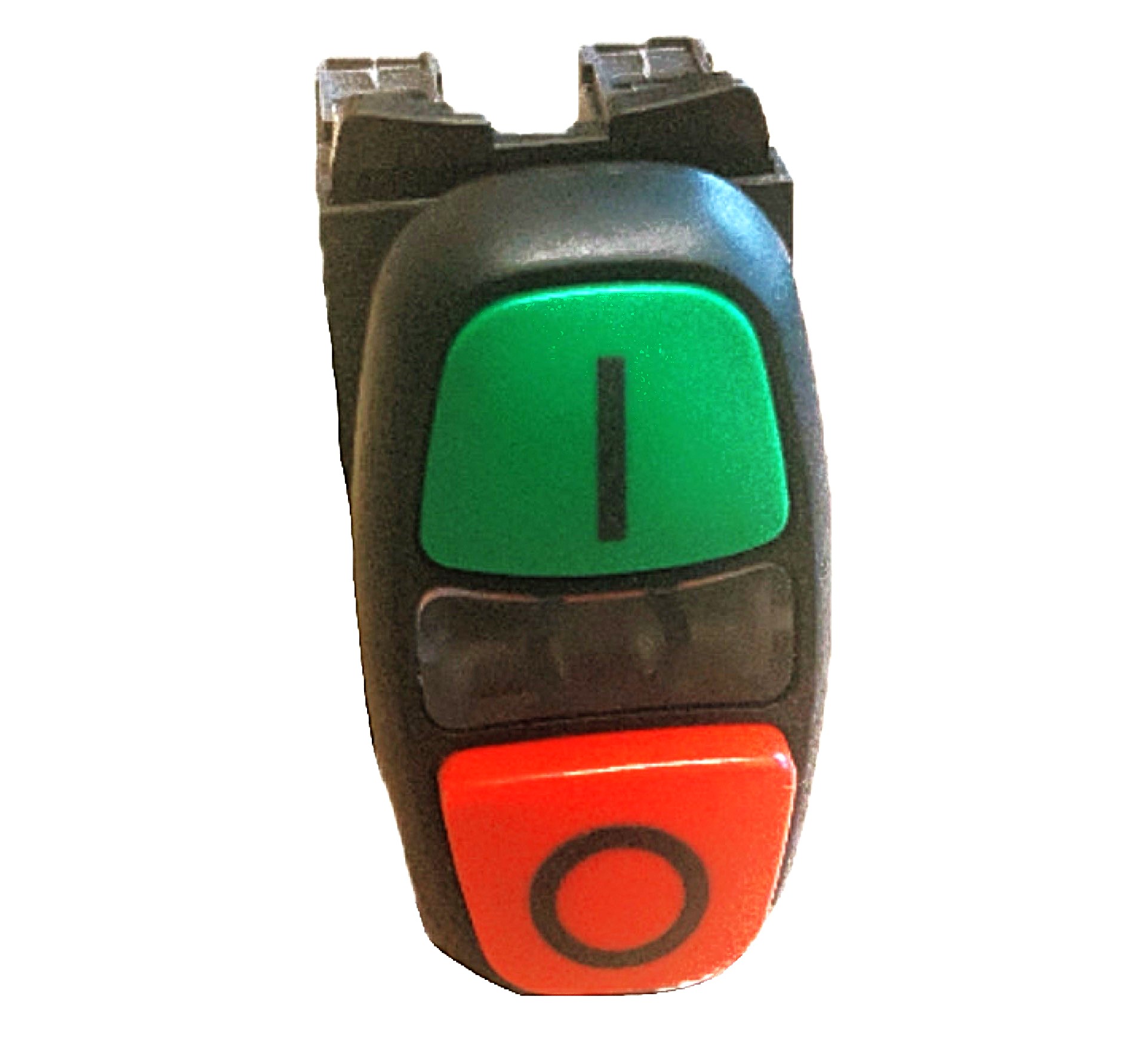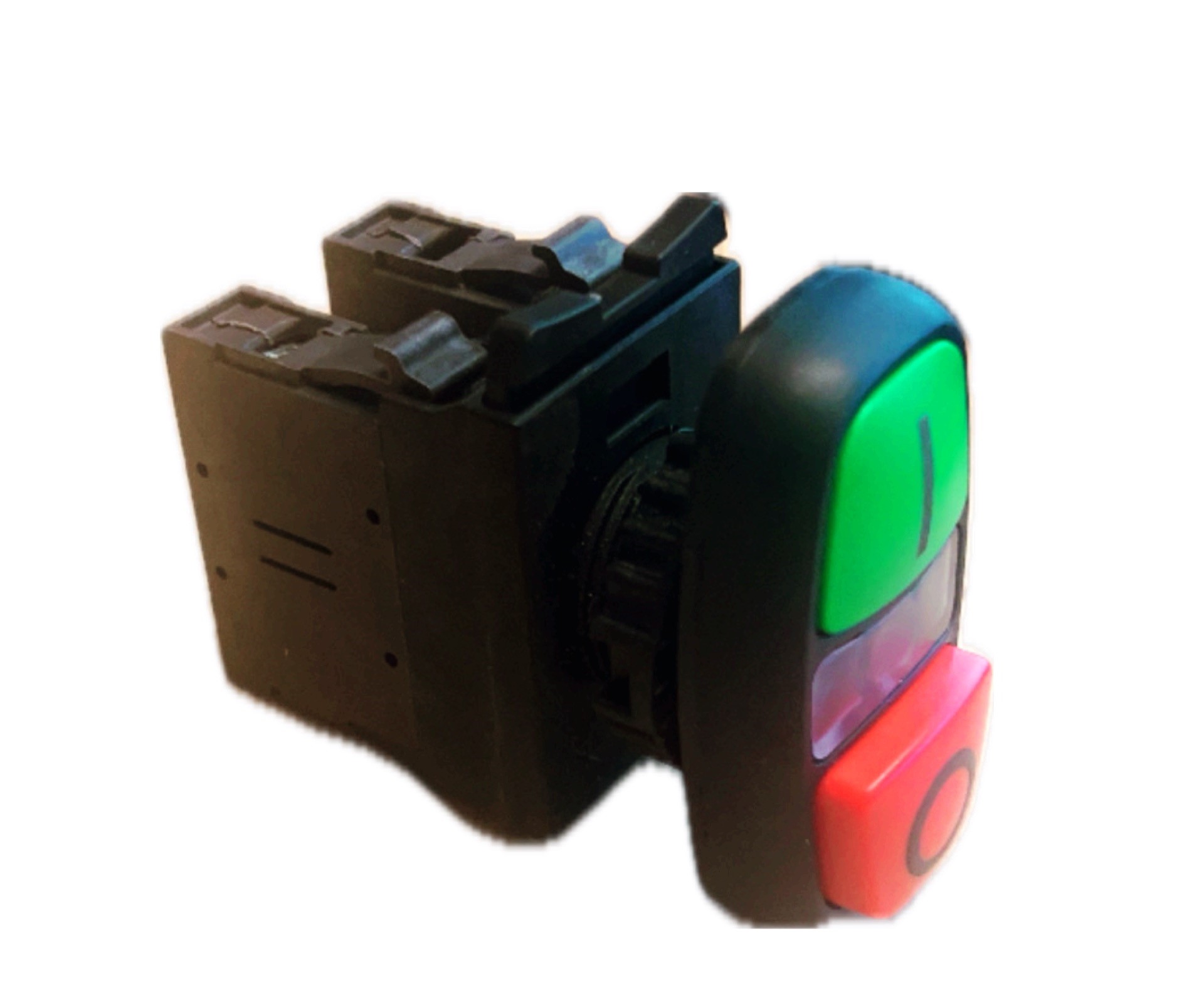 WEG Twin Pushbutton to suit 22mm diameter hole. Includes Green Start and Red Stop buttons.